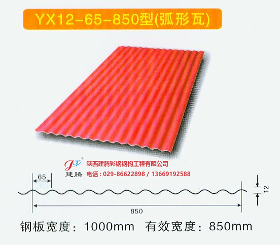 波浪紋彩鋼瓦 圓弧形彩色鋼瓦 正弦弧形彩鋼瓦 YX12-65-850