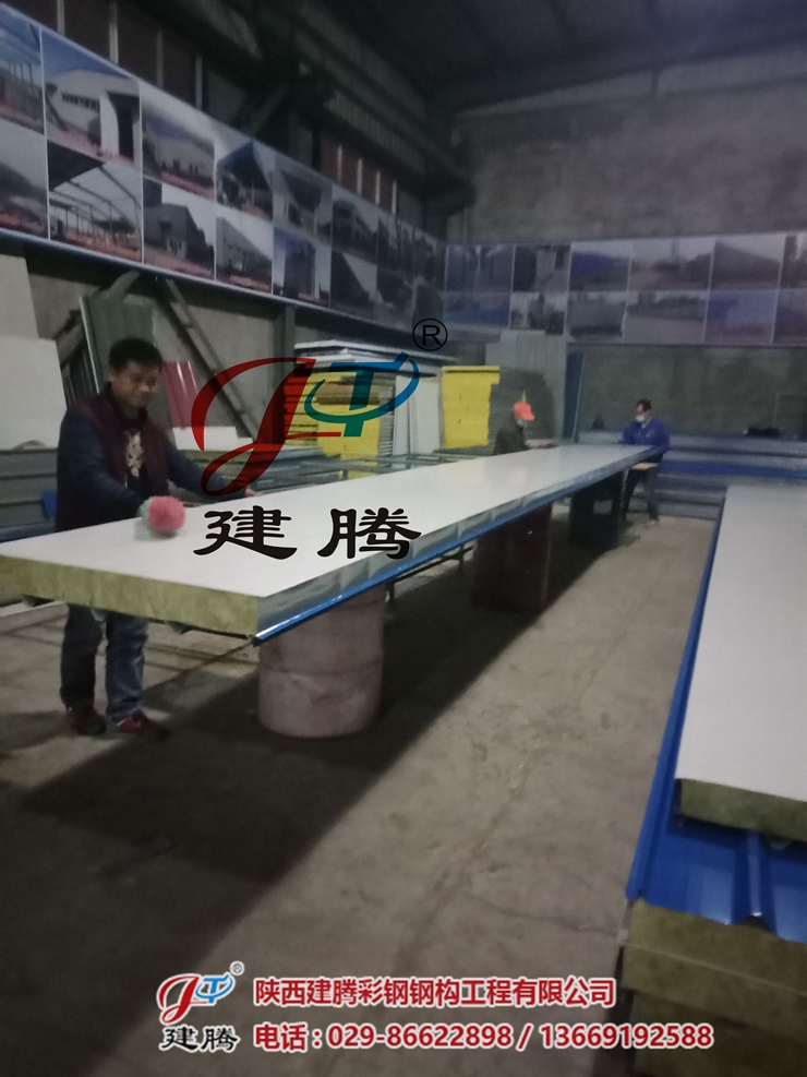 巖棉夾芯板產(chǎn)品用途:應(yīng)用于各種防火隔音場(chǎng)所,產(chǎn)品特點(diǎn):1.巖棉屬于無(wú)機(jī)隔熱材料,是以鐵礦渣為主要原料,經(jīng)熔化,用高壓蒸汽噴吹冷卻而成,具有質(zhì)輕,導(dǎo)熱系數(shù)小,彈性好,不燃,不蛀,不腐爛,化學(xué)穩(wěn)定性的優(yōu)點(diǎn).同時(shí)還具有絕佳的隔音性能. 2.巖棉夾芯板除用于一般的起保溫隔熱作用的活動(dòng)結(jié)構(gòu)外,它們更被廣泛地應(yīng)用于各種防火隔音場(chǎng)所.產(chǎn)品性能1、絕熱性能。絕熱性能好是巖棉的基本特性,在常溫條件下(25℃左右)它們的熱導(dǎo)率2、燃燒性能。巖棉的燃燒性能取決于其中可燃性粘接劑的多少。巖棉本身屬無(wú)機(jī)質(zhì)硅酸鹽纖維,不可燃,在加工成制品的過(guò)程中,有時(shí)要加入有機(jī)粘結(jié)劑或添加物,這些對(duì)制品的燃燒性能會(huì)產(chǎn)生一定的影響。3、隔音性能。巖棉具有優(yōu)良的隔音和吸聲性能,其吸聲機(jī)理是這種制品具有多孔性結(jié)構(gòu),當(dāng)聲波通過(guò)時(shí),由于流阻的作用產(chǎn)生摩擦,使聲能的一部分為纖維所吸收,陰礙了聲波的傳遞。材料適用:1.上/下鋼板厚度:板厚可制成50~150mm2.芯材:(礦)巖棉容量為120~150kg/m³ 3.側(cè)邊鋼帶或無(wú)側(cè)邊封鋼帶:0.5mm~1.0mm鍍鋅板巖棉夾芯彩鋼板下料寬度1200mm,有效寬度為1150mm;凈化彩鋼板企口板下料寬度1200mm,有效寬度1150mm。