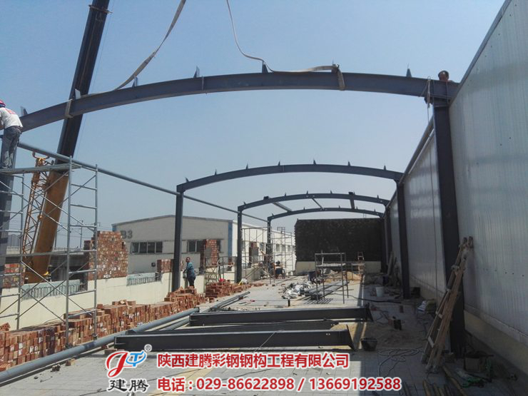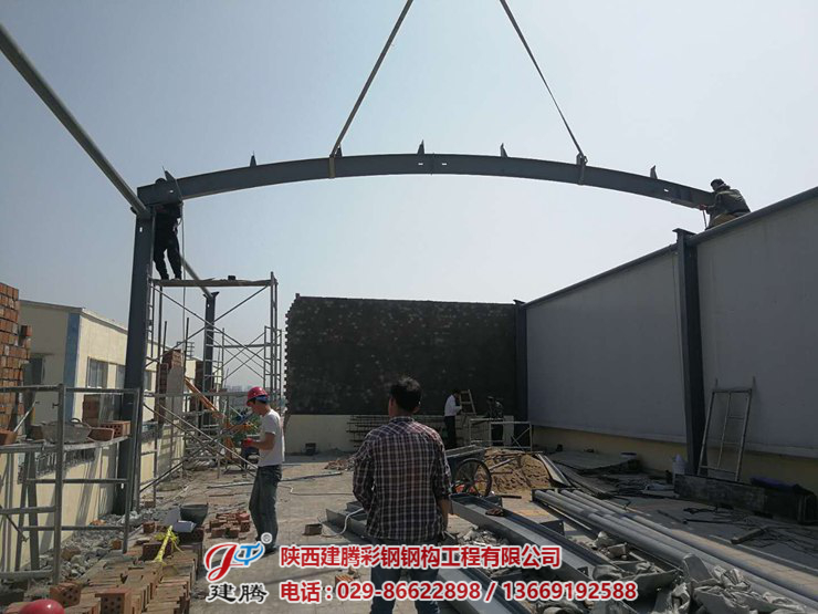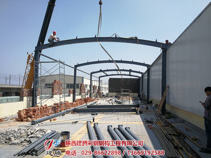 西安動車段健身房樓頂鋼結(jié)構(gòu)工程由我公司承建,五一假期臨近,我司作業(yè)人員,克服高空作業(yè),場地,天氣等問題,依然堅守崗位,以廠為家,兢兢業(yè)業(yè),任勞任怨,爭取提前竣工。