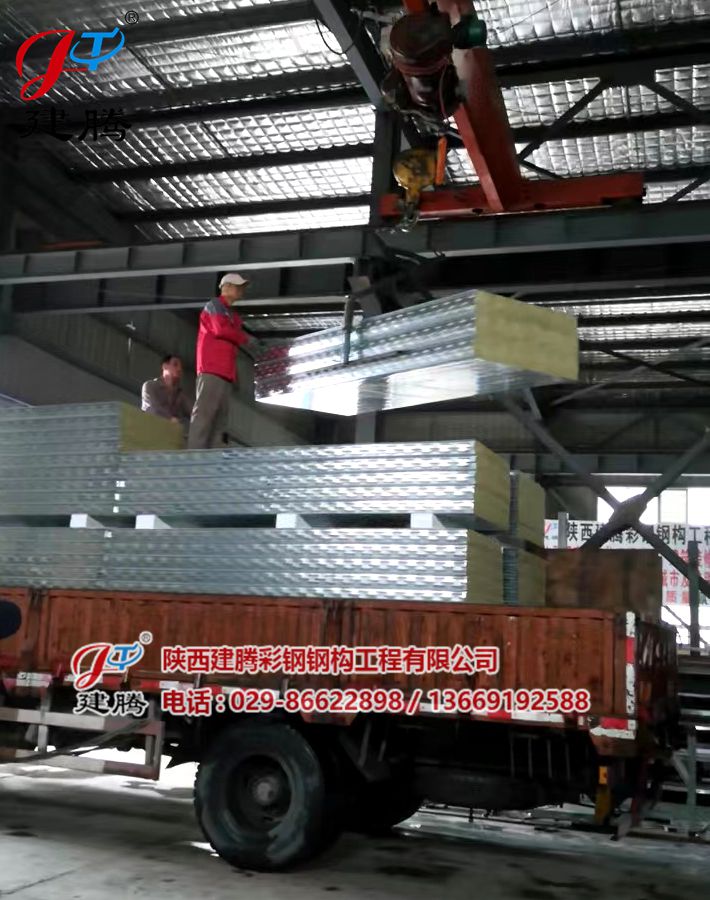 陜西建騰彩鋼鋼構(gòu)工程有限公司 巖棉烘道板發(fā)往西安比亞迪廠 今天發(fā)貨啦