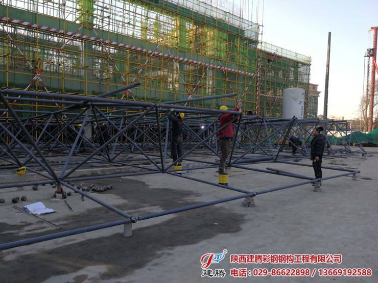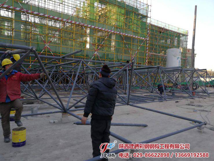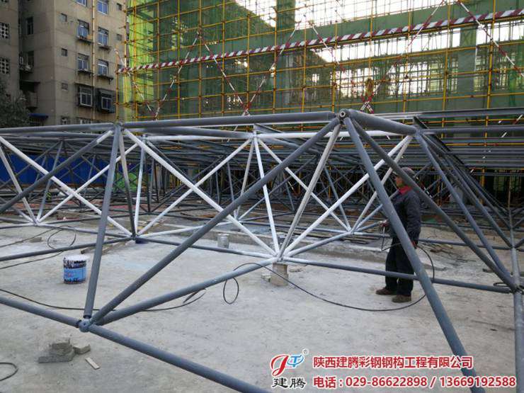 位于西航二校的600多平方的辦公樓,食堂及活動中心屋面網(wǎng)架由我公司承建!